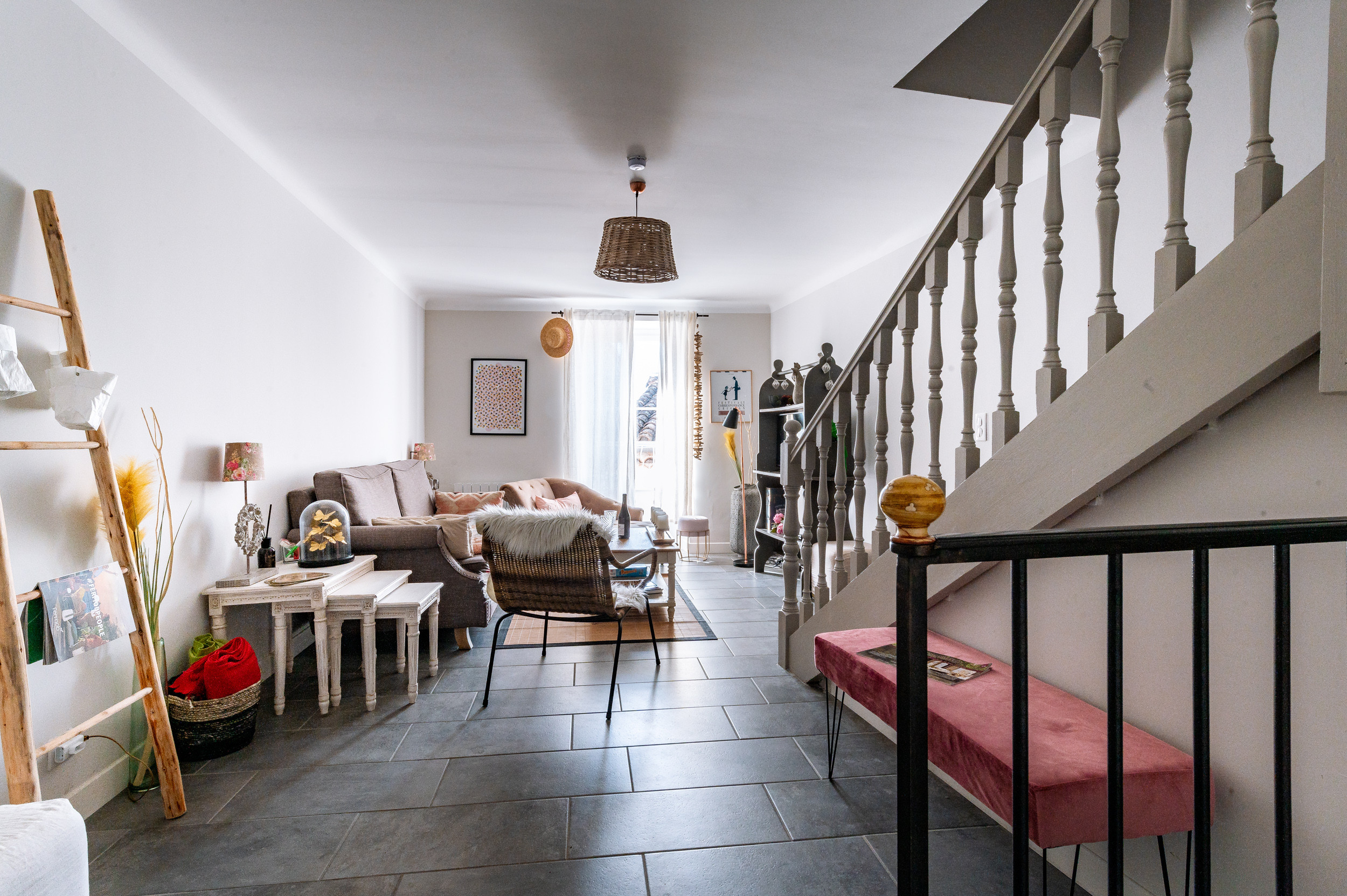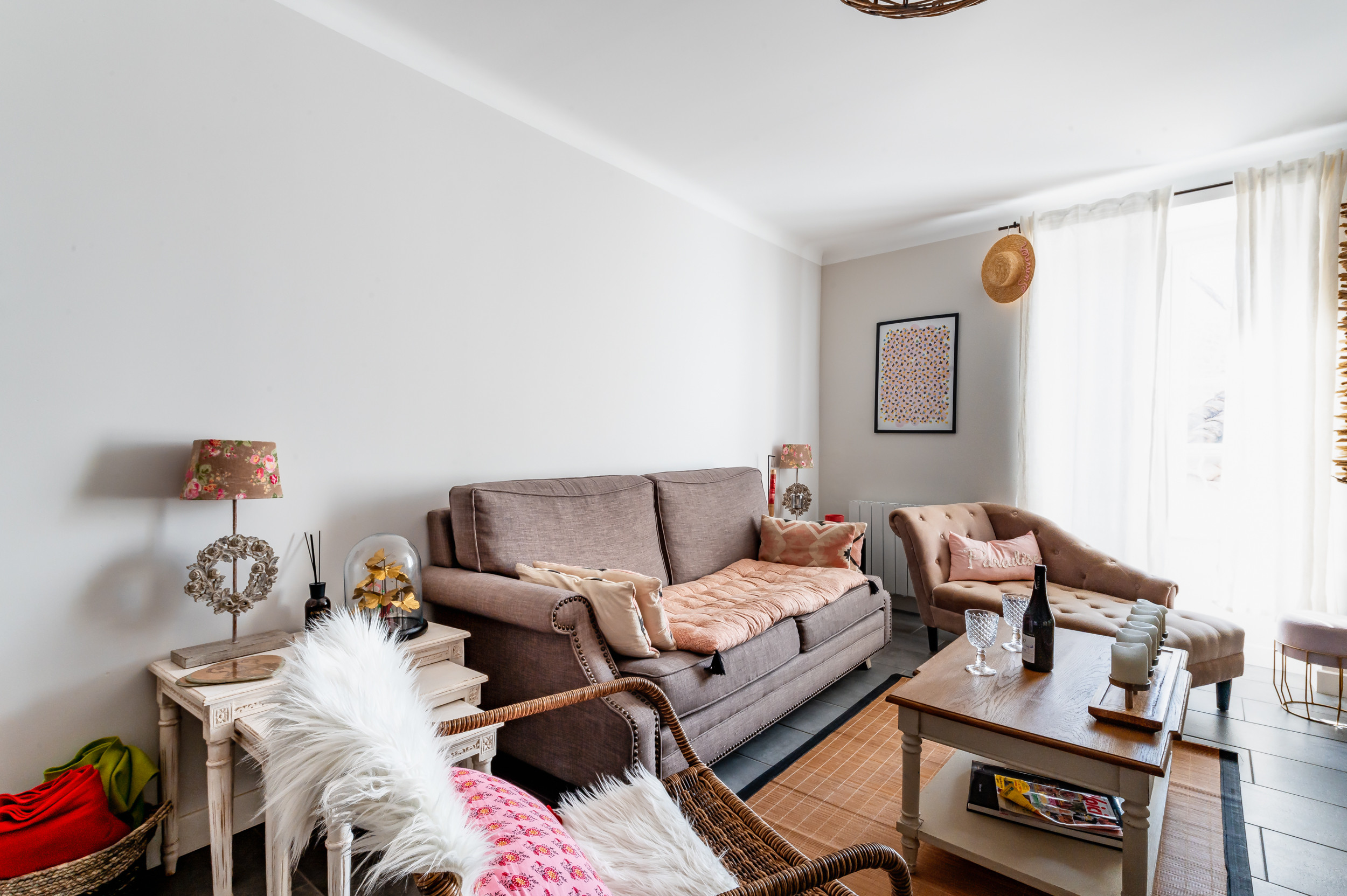 • Un salon cosy avec canapé, TV, enceinte Bluetooth