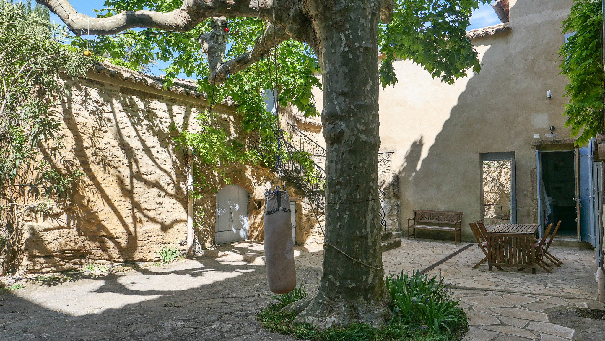 • Cour intérieure ombragée par un platane bi-centenaire : espace repas et détente + table de ping-pong