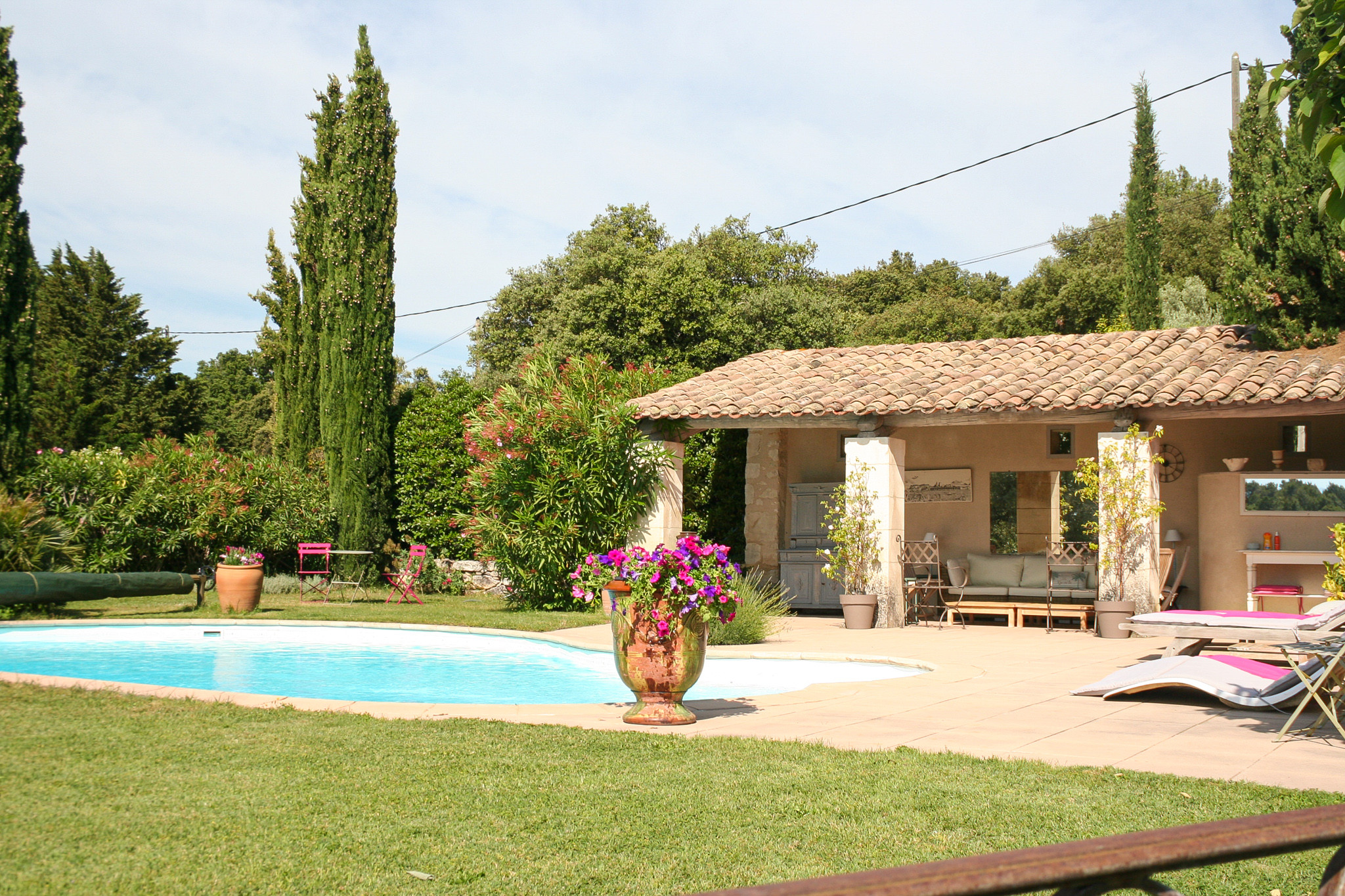 La propriété accueille confortablement jusqu’à 10 personnes grâce à ses 5 chambres climatisées, idéal pour les séjours en famille. Elle offre une atmosphère chaleureuse, un confort moderne et une décoration authentique typiquement provençale