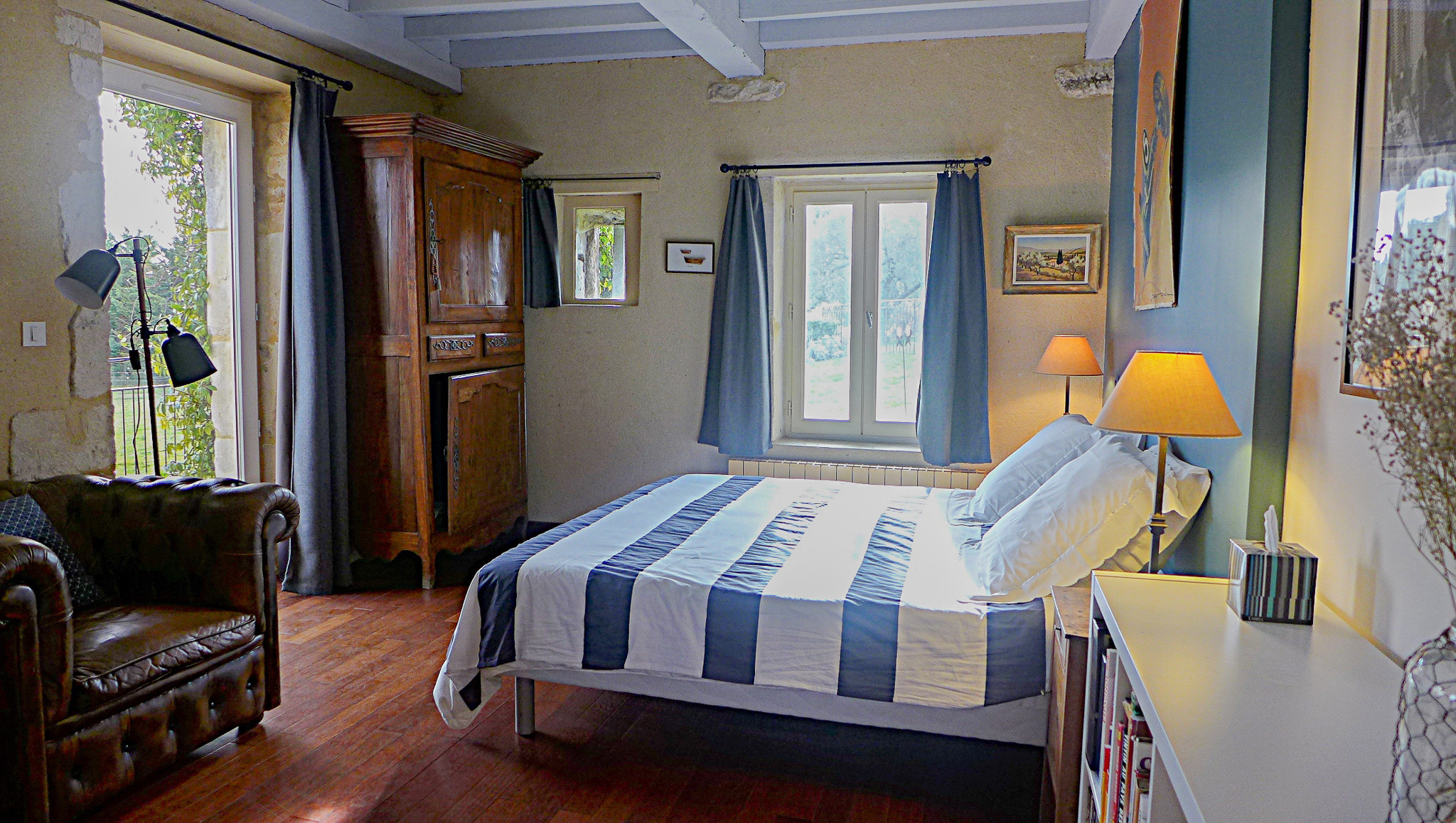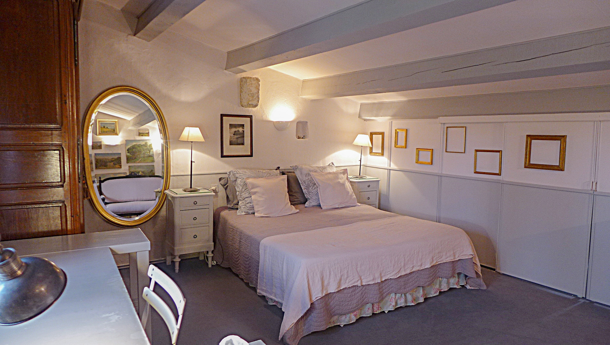 - Une deuxième chambre se trouve sous toiture, avec toilettes et lavabo privatifs.