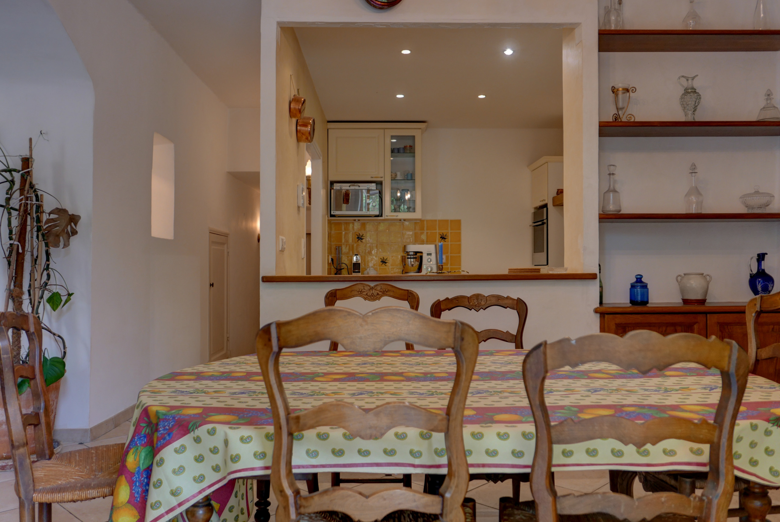 L'emplacement au centre du village alors que le jardin offre un calme absolu au bord de la piscine ou dans les différents espaces, absolument sans vis-à-vis.