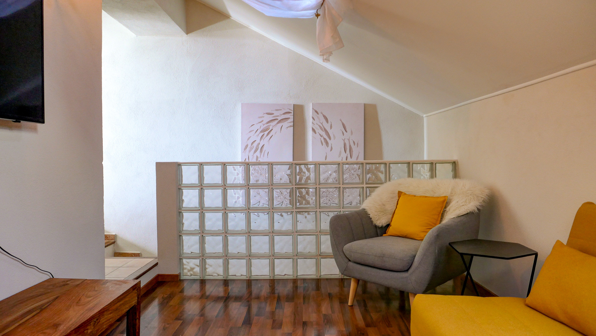 - Salon climatisé, décoré avec soin, baigné de lumière grâce à une large baie vitrée