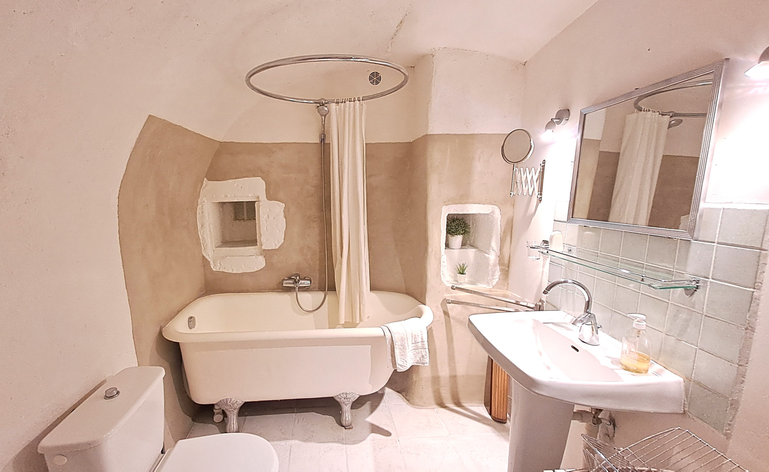 Il est situé en rez-de-jardin d’une maison de village, qui comprend au 1er étage un appartement, avec entrée commune.