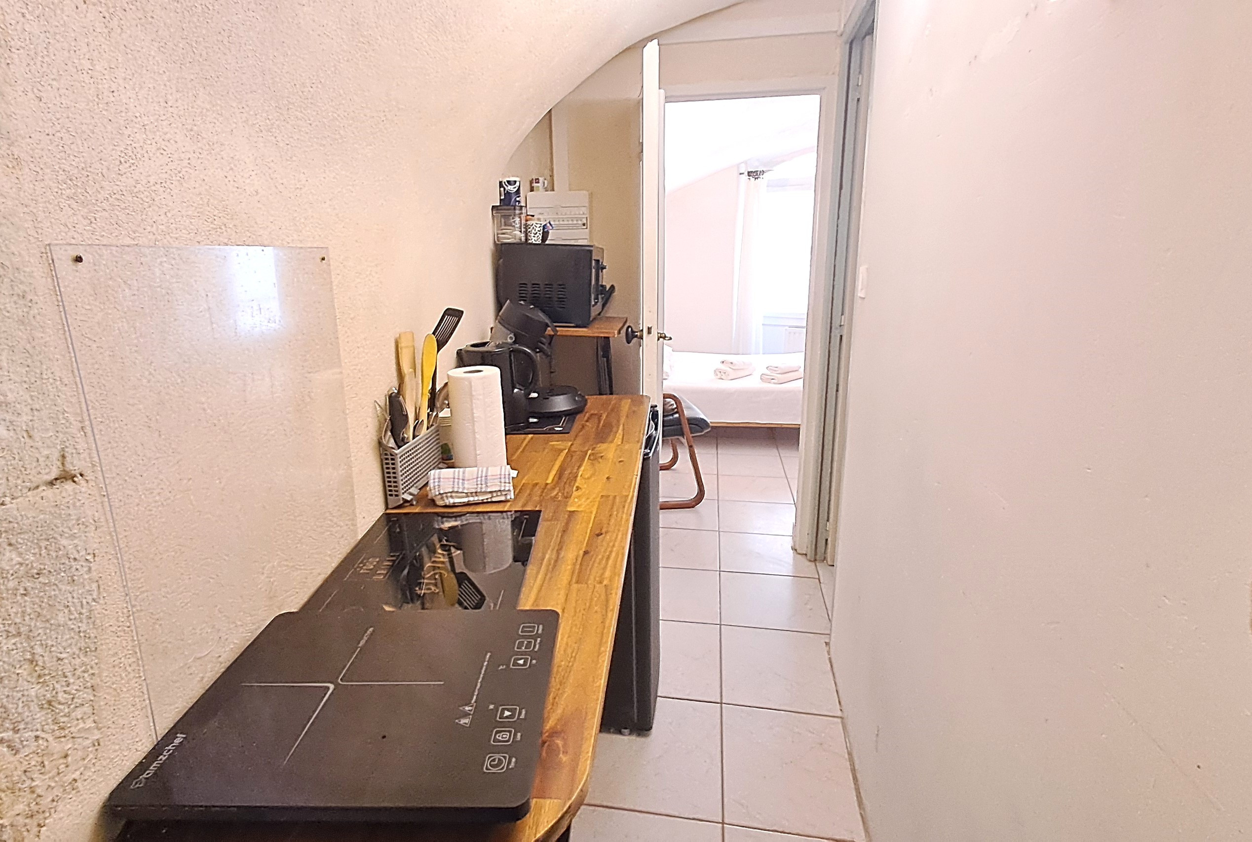 Entièrement équipé, ce studio offre tout le confort nécessaire : linge de lit et serviettes fournis, coin nuit avec lit double, kitchenette fonctionnelle, salle de bain avec WC et connexion Wi-Fi incluse.