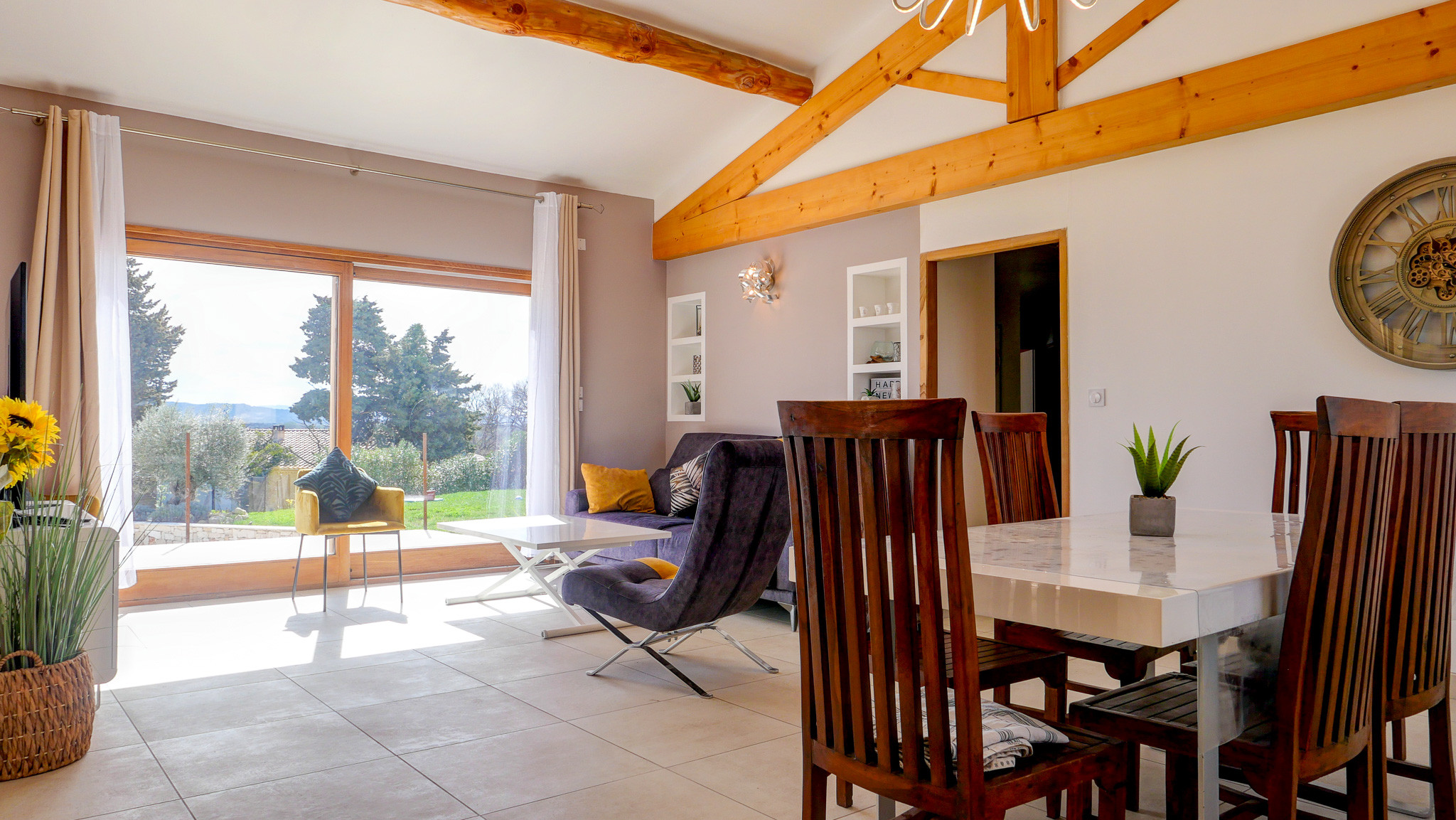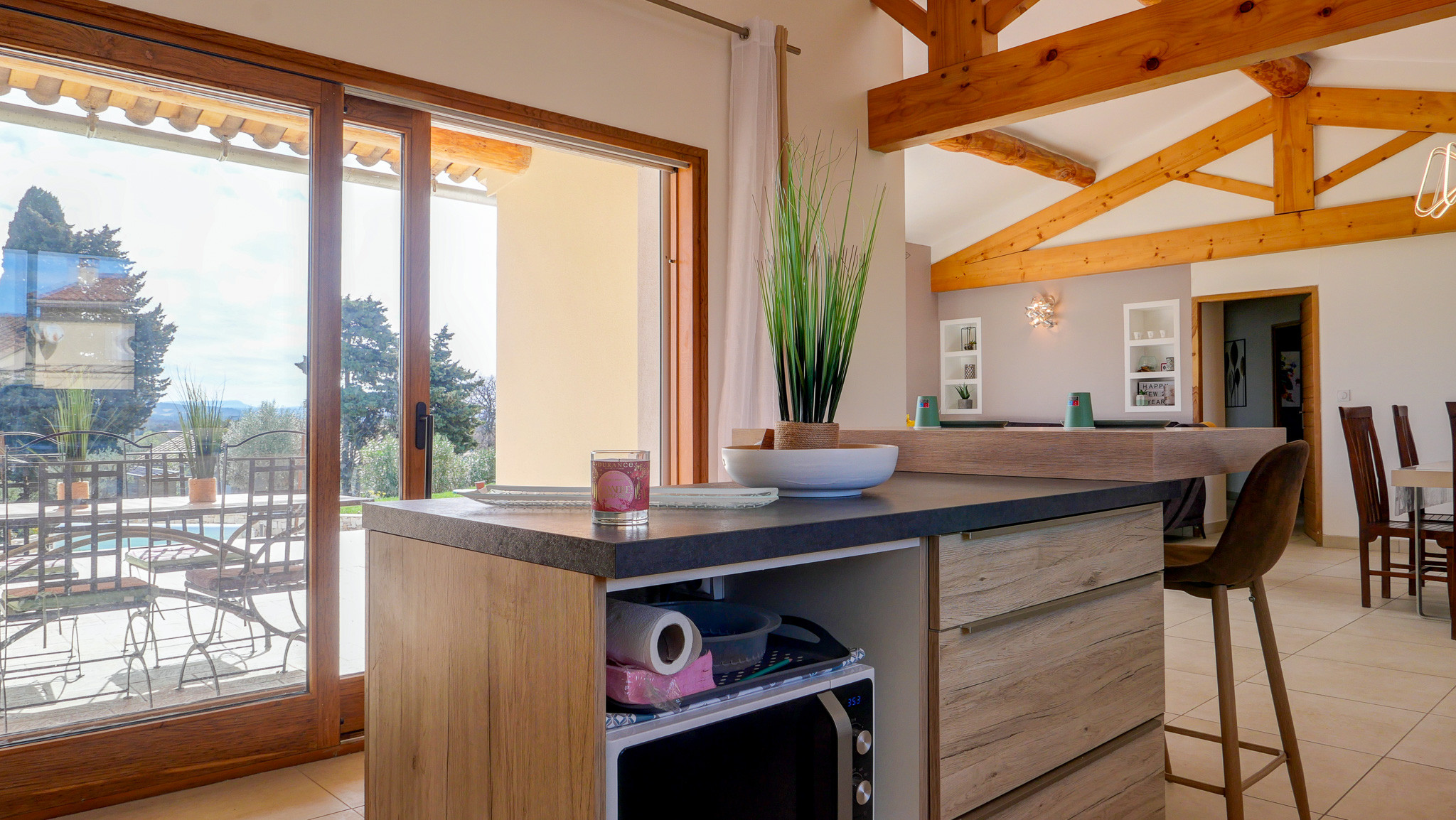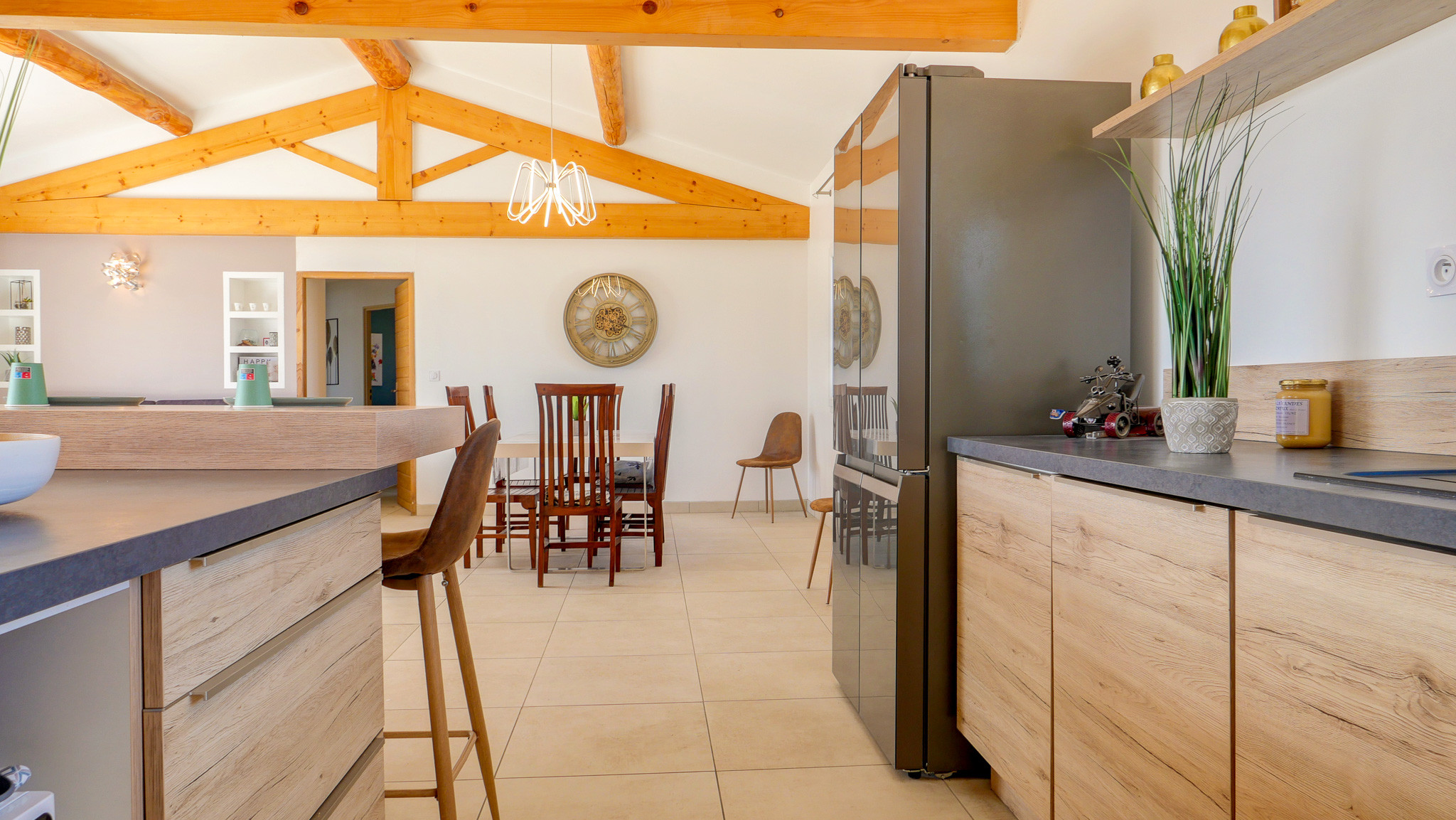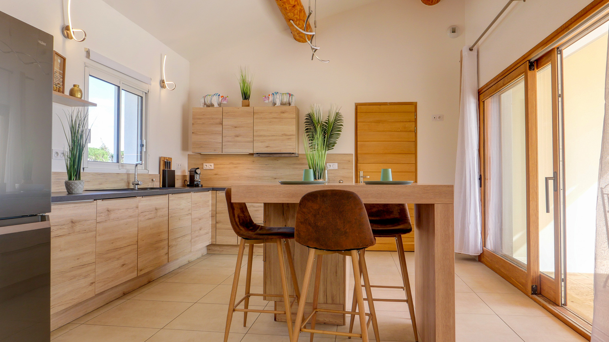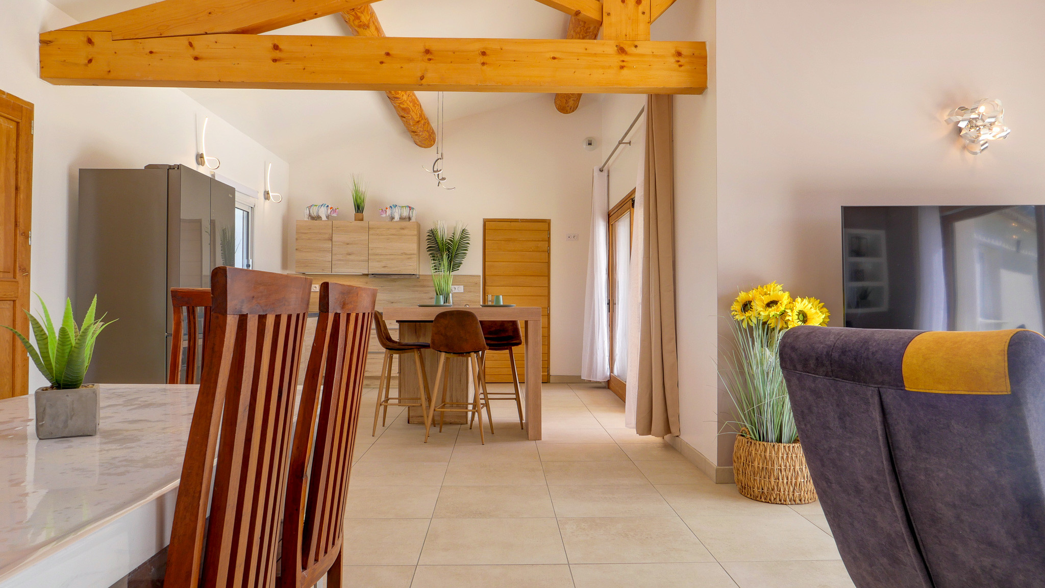 • Une grande pièce de vie conviviale : salon, salle à manger et cuisine ouverte et équipée, donnant directement sur la terrasse extérieure