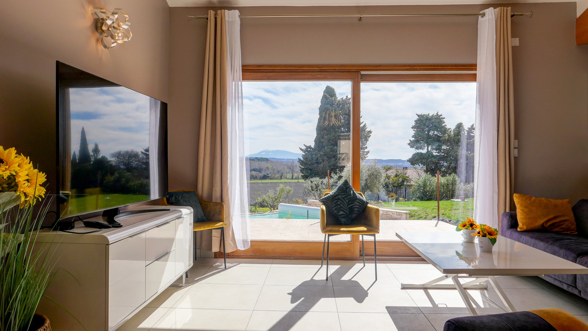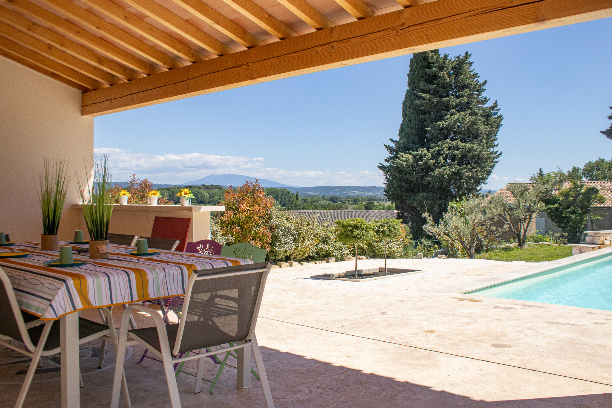 Magnifique vue sur le Mont Ventoux et ses alentours, très paisible, la piscine est très agréable et les aménagements extérieurs sont parfaits.